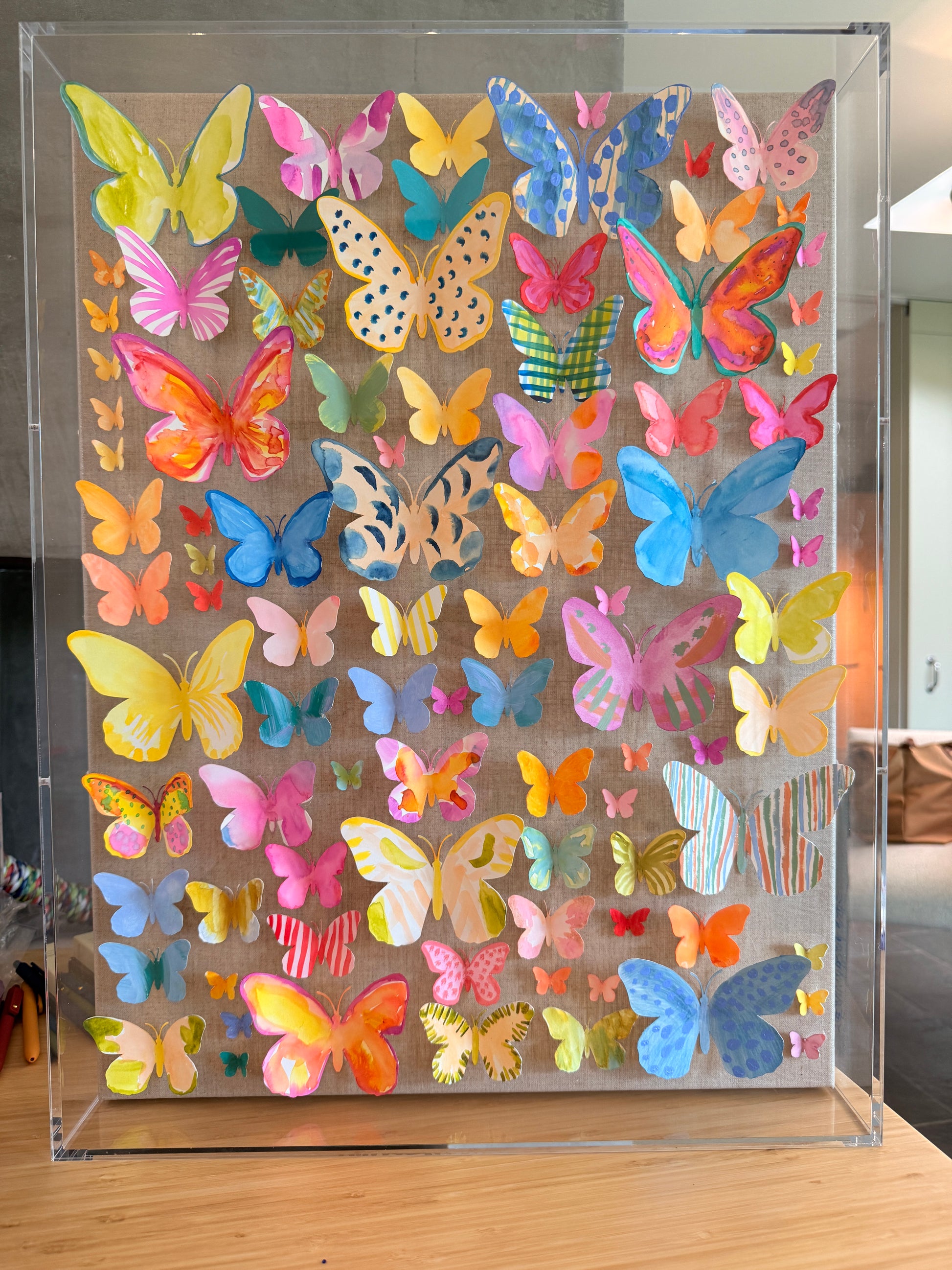 watercolor butterflies on linen canvas